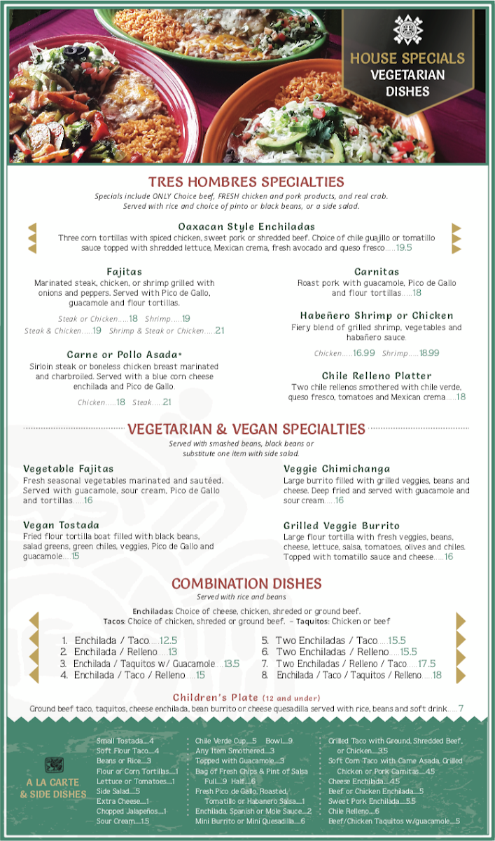 Welcome to Tres Hombres Mexican Grill and Cantina, your go-to destination for authentic Mexican cuisine in Millcreek, UT. Nestled at 3298 Highland Dr., this vibrant eatery boasts a diverse menu that caters to various palates, including fantastic vegetarian and vegan options.